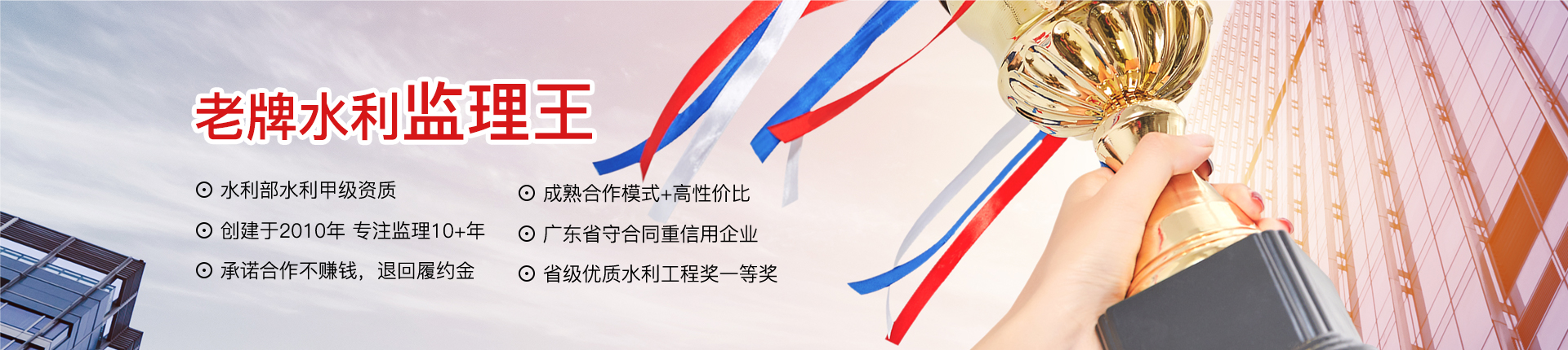 廣東中水工程監(jiān)理有限公司成立于2010年7月,是一家工程監(jiān)理綜合性服務企業(yè)。公司擁有水利部水利甲級、房屋建筑/市政公用甲級等資質,被列入廣東省政府采購代理機構指定企業(yè),多次獲得“廣東省守合同重信用企業(yè)”等榮譽。
